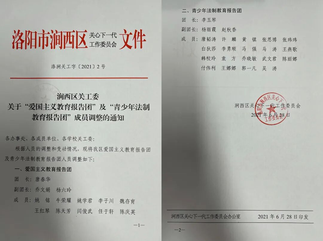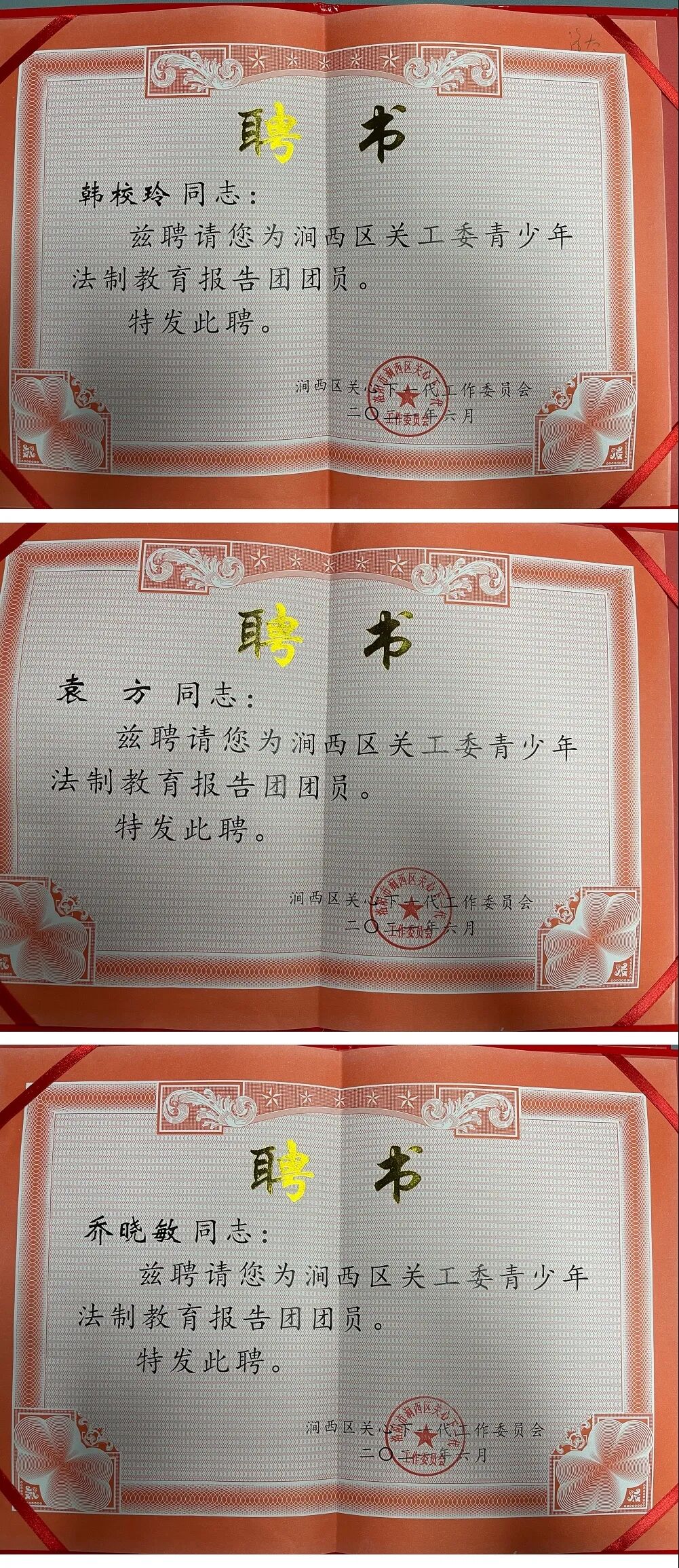 【洛太木兰资讯】洛太·木兰律师被聘为涧西区关工委青少年法制教育报告团团员